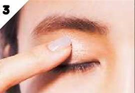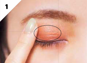 上まぶたのベースには、C-bのパーリーなベージュ色を。指先でしっとりとツヤをのせ、立体感のあるまぶたに。