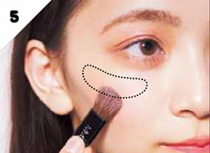 B-aのシェーディングパウダーを鼻筋から眉下にのせ、ホリをアピール。太めのブラシでふんわりと自然に。