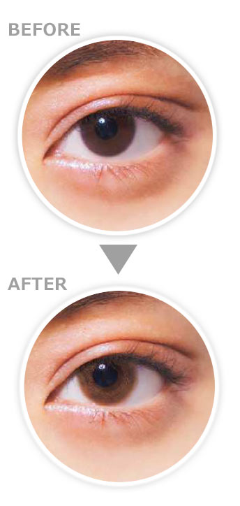 高発色のライトベージュで色素の薄い外国人のような瞳に。元の瞳を活かしながらおしゃれにカラーチェンジ。