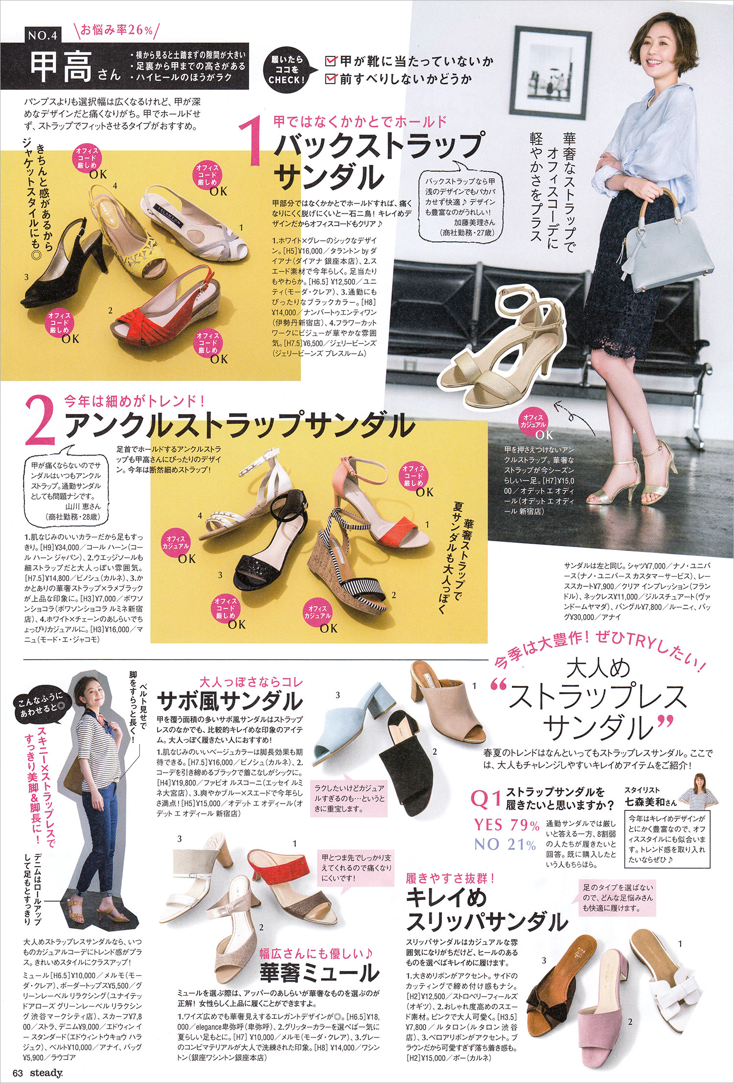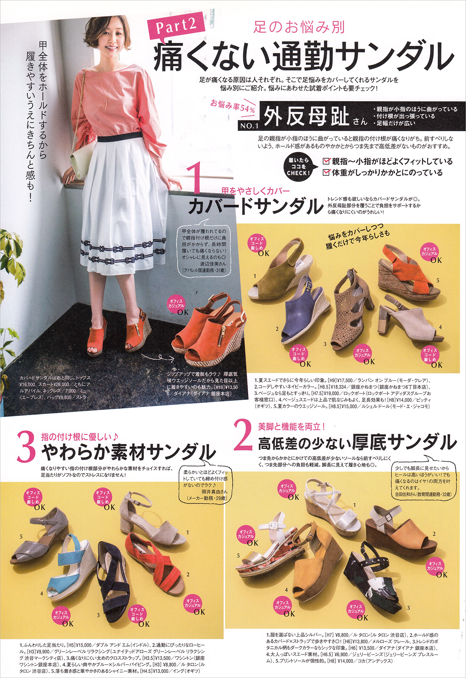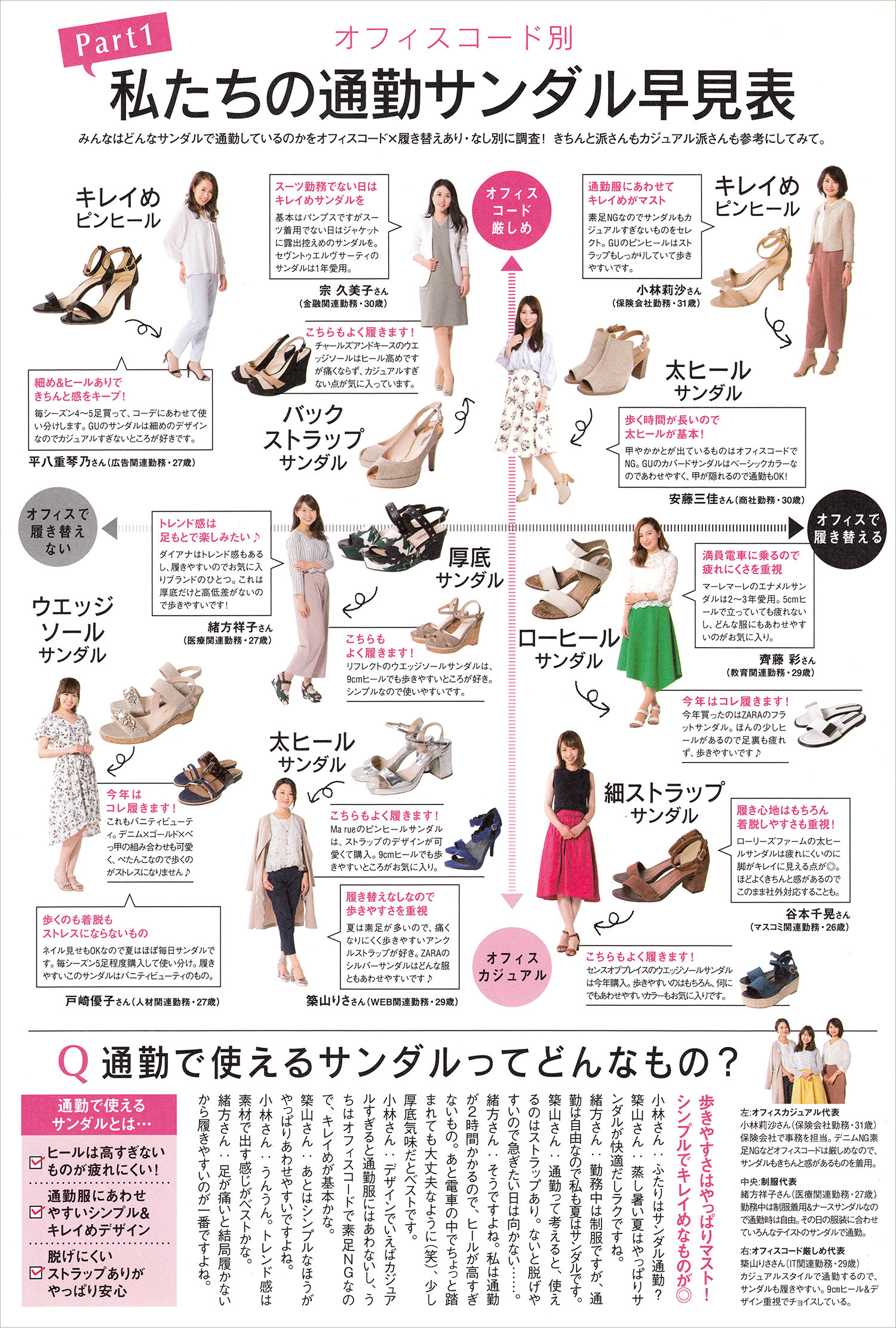 仕事で履くものだけに、オフィスカジュアルや通勤ではフォーマル感のある「ヒールのあるサンダル」が定番となっています。スポーツサンダルやサボなど「カジュアルなものは避ける」のがベターです。