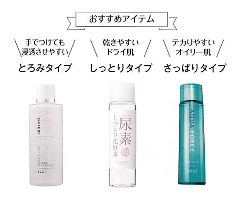汚れの落ちた清潔なまっさらの肌は、必要なうるおいも一緒にオフされて肌バリアが弱い状態。まずは、たっぷりの水分を補給して肌の奥からうるおいで満たして土台をつくりあげましょう。