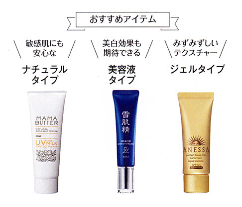 〈右〉化粧持ちをよくする下地効果も兼ね備えた顔用日焼け止め。