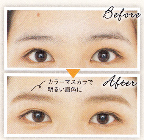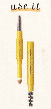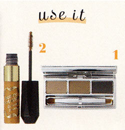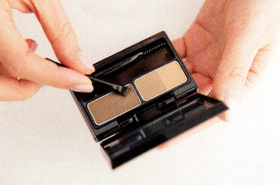 1のパウダーで全体ではなく、足りないすき間だけ軽く埋めたら、2のマスカラを眉全体にとかすようにつけてカラーチェンジ。