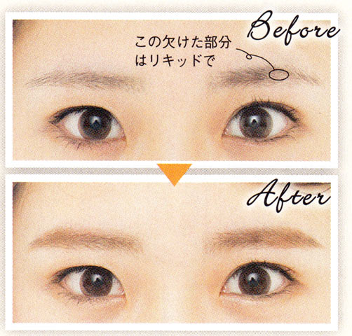 パウダーチップと太めペンシルで、立体眉が完成。