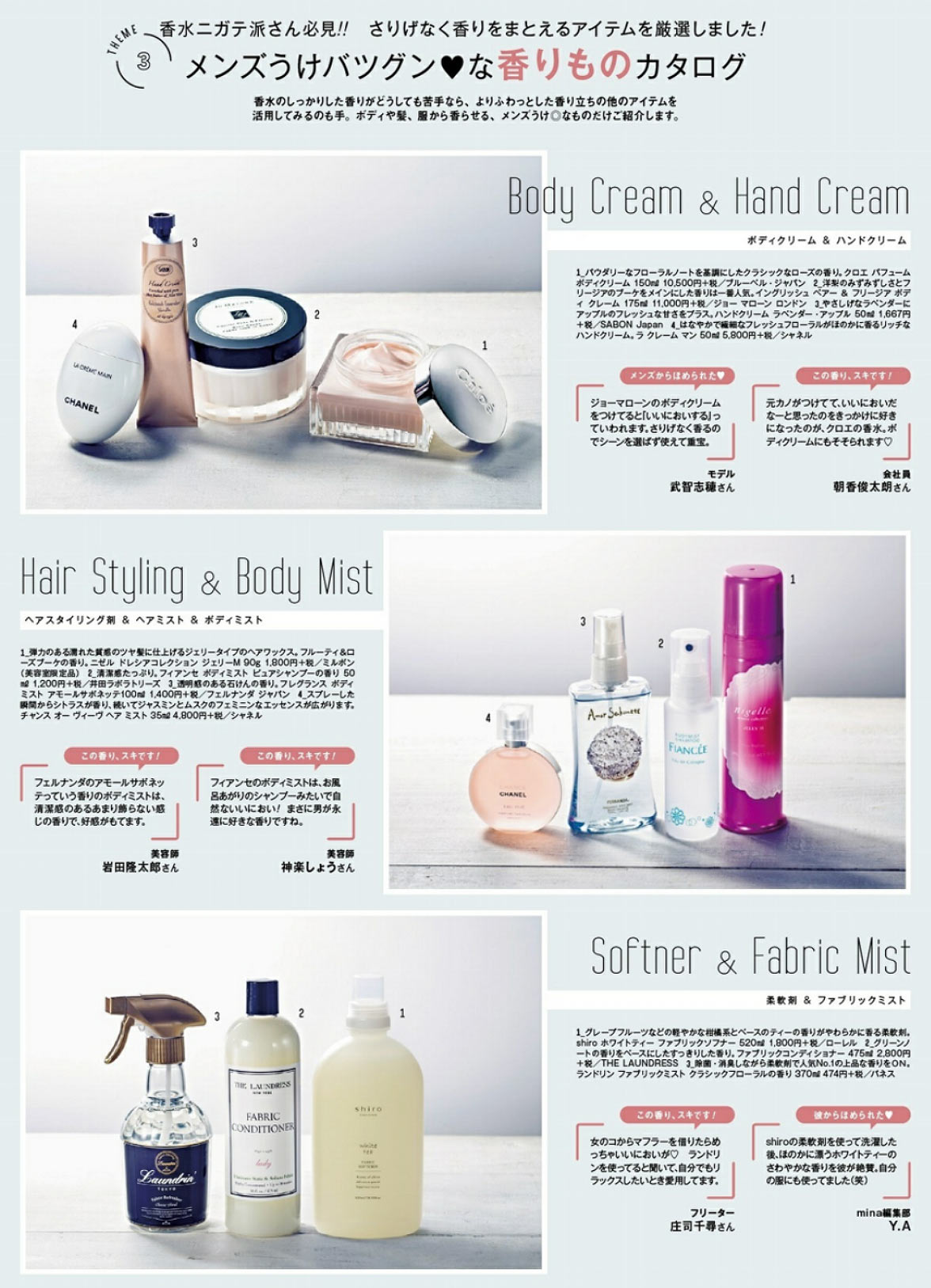 雑誌のアンケートでは、「柑橘系(フローラル)・せっけん・ローズ・ムスク」の4つの香りが人気という結果に!