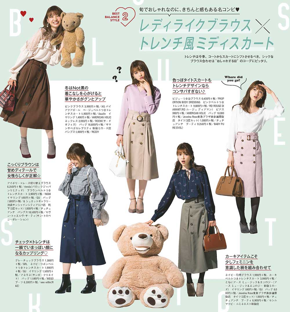 トレンチは今季、コートからスカートにシフトさせるべき。シックなブラウス合わせは“デートする日”のコーデにピッタリ。