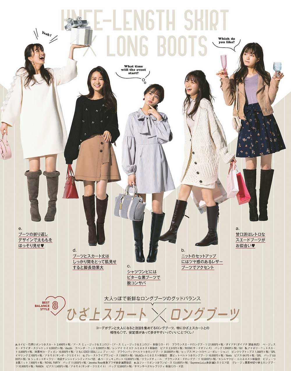 コーデがグンと大人になると注目を集めているロングブーツ。特にひざ上スカートとの相性も◎で、安定感があって歩きやすいっていいことづくし!
