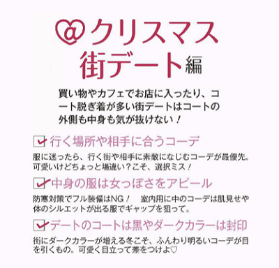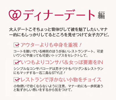 シーン別では「2回目以降デートにありがちなTPO」に合わせたコーディネートを紹介♪