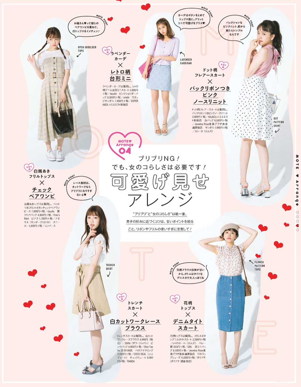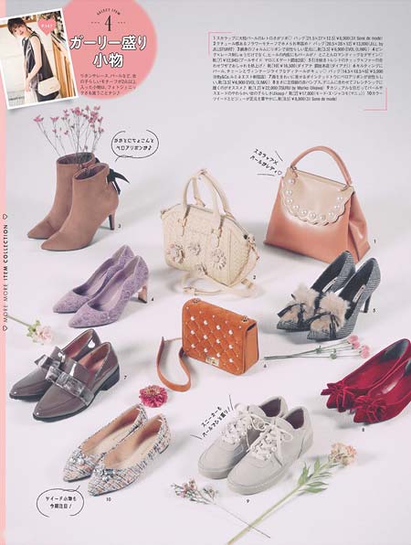 パール、リボン、花、レース…など、甘めなモチーフがぎっしりなガーリー盛り小物。存在感バッチリなので、小物をメインにする引き算コーデが正解。なるべくシンプルコーデにして、謙虚なイイ彼女感をアピール❤