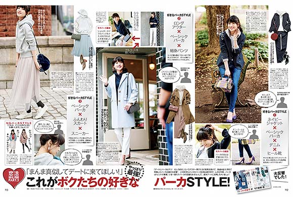 (下左)辛めのチェスター×パンツコーデでも、パーカーを入れればフレンドリー。「2~3回目のデートはコレで❤」な意見が多数!