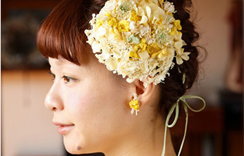 耳元にふんわりとしたボリュームとガーリーな印象を添えます。