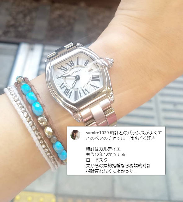 そして5連ブレスレットも特徴で、全体的に優雅な印象に仕上がっています。
