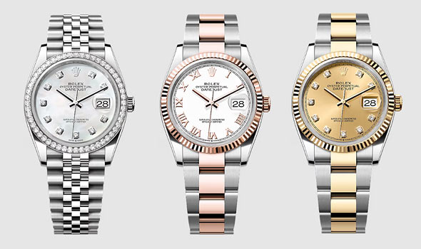 実用性の高い日付表示に加え、モデルによってダイヤインデックスやゴールドコンビストラップなど、華やかさも兼ねそなえる「デイトジャスト」。