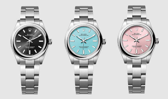 シンプルなデザインで、女性向けの小ぶりサイズも豊富な「オイスター・パーペチュアル」。