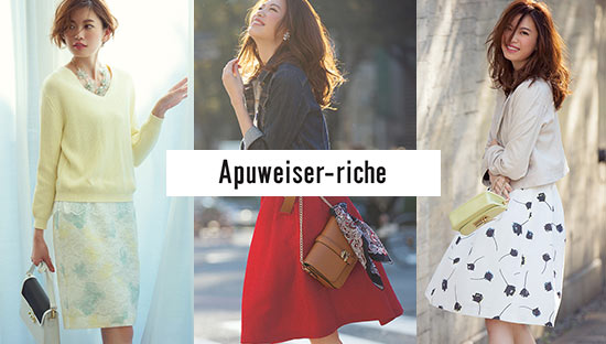 アプワイザーリッシェは、オンもオフも輝きたい女性に向けたあらゆるシーンで活躍するワードローブを提案しています。清楚系~トレンド系までスタイルは色々。生地も上質なので20代~30代女性におすすめです。