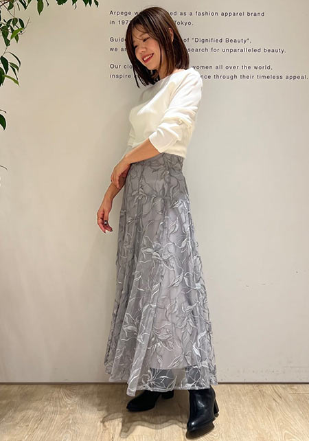 「トレンドも可愛さも欲しい」欲張りな方にぴったり♥ 流行の雰囲気を取り入れたボリューム感のある可愛らしいチュールスカート。フェミニンな刺繍デザインがこだわりです。