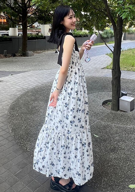 彼とのデートも好印象なフラワーワンピース。首元はVネックなのでスッキリとした表情に魅せてくれます。上品なノーカラージャケットやトレンチコートとの相性抜群です♪