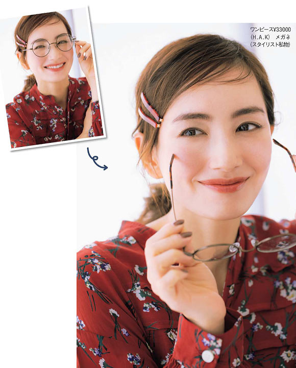 なぜならメガネのフレームの影の効果で、目元に奥行きが生まれ、目ヂカラがあるように見えるから。だから、まぶたにホワイト系のクリームアイカラーで光を差すだけでアイメイクはほぼ完了。マスカラやアイライナーは省略してもOKです!