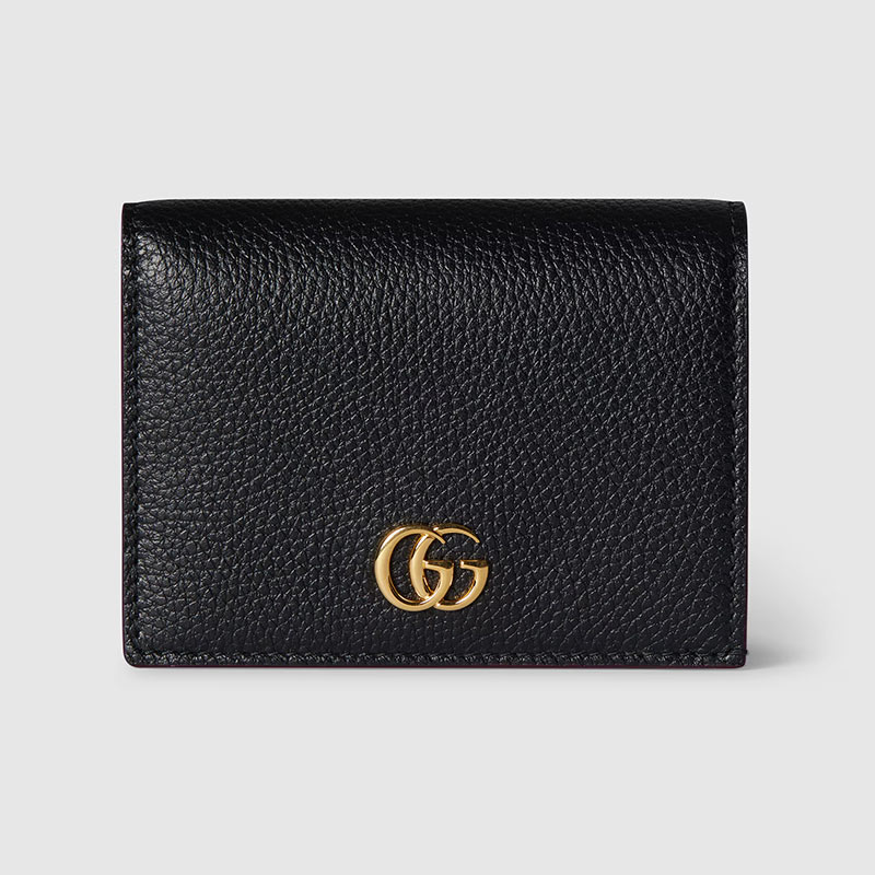 上質なレザーをベースに、中央にあるゴールドトーンのダブルGハードウェアが程よくグッチだと主張するミニ財布。