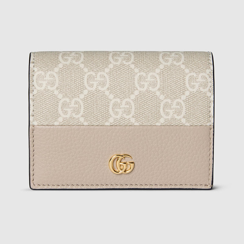 グッチの伝統を物語るGGスプリームキャンバスと、上質なレザーを大胆に組み合わせたバイカラーデザインが新鮮なミニ財布。