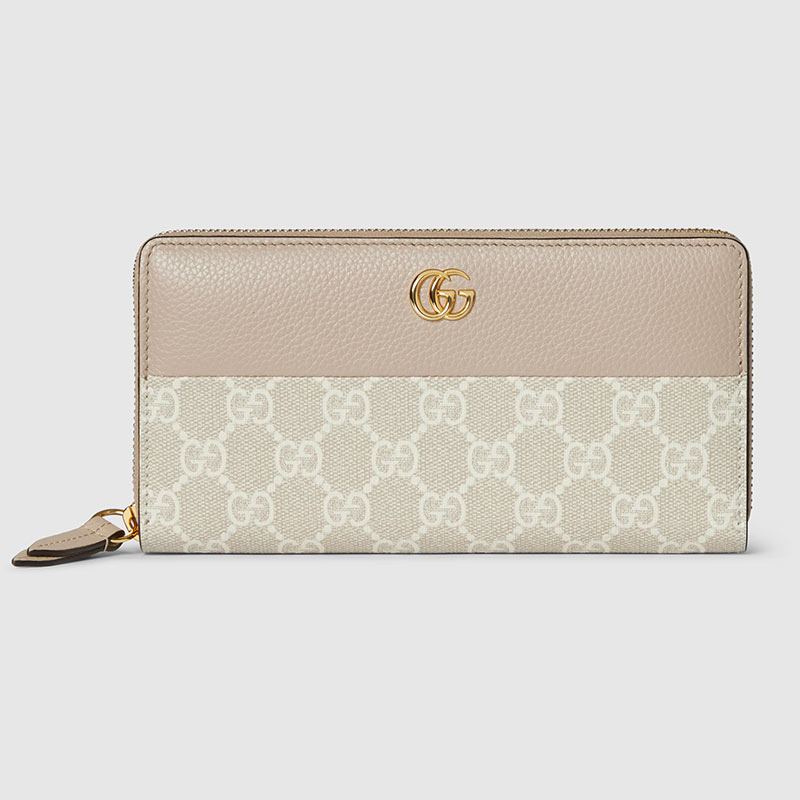 アイコニックなGGスプリームキャンバスと、美しいレザーを組み合わせ、豊かな表情を生み出した長財布。
