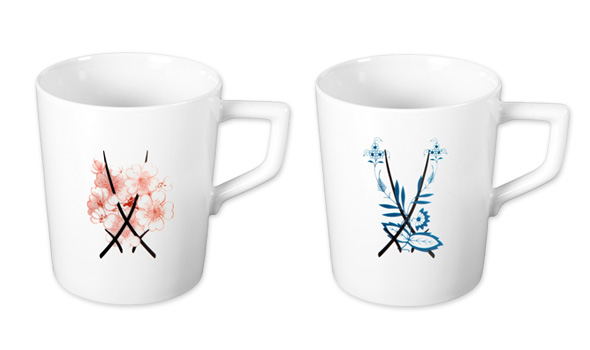 マグカップは、フランスの伝統的なリモージュ磁器を使用。メゾンを象徴する「トワル ドゥ ジュイ」や幸運のシンボルであるスズランなどを繊細なタッチで描いています。