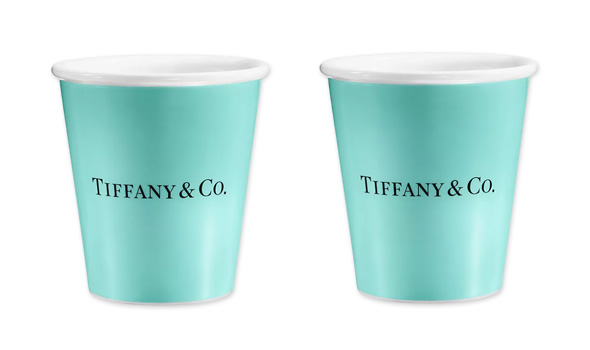 ティファニーブティックで提供される紙コップを、最高品質のボーンチャイナで再現した遊び心あふれる逸品。