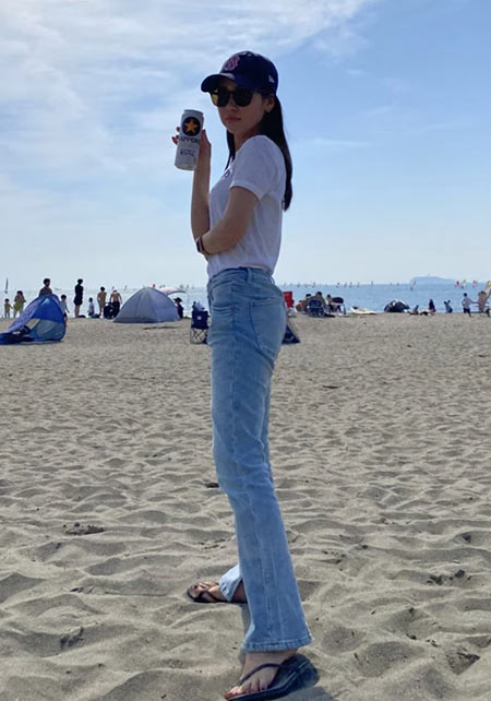 コーデのハズしや、ビーチ&プールサイドで使いたいラウンドフレーム。レトロだけれどスリムな「メタル×べっ甲」が、どこかイマドキらしい洗練された印象。