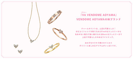 VAヴァンドームは「ヴァンドーム青山」の妹ブランドで、フレッシュ・キュート・デイリーをコンセプトに、女の子に向けたジュエリーを展開しています。