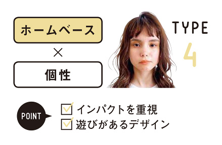 インパクトのあるアイテムを選んで、見る人の目線を上に、輪郭から逸らして。個性があるホームベース顔さんはさらにデザインで遊ぶとハイセンス。