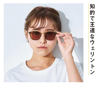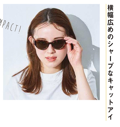 面長顔さんにはキャットアイが似合う! 今年はカジュアルなものも多いけど、個性派なものもぜひ挑戦を。全体の縦横バランスも均等にしてくれます。