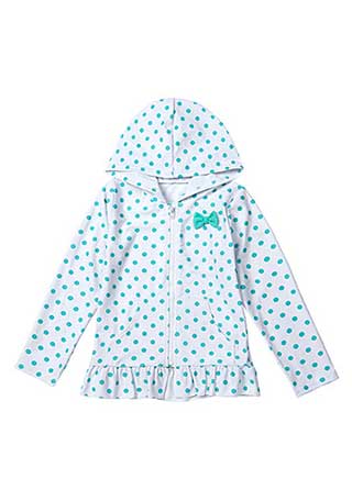 7.流行りのドットも水色なら子どもらしい♪フリルスイムスーツ(90~140cm) \1,799