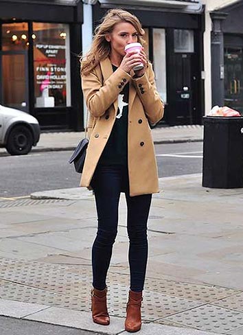 コートは春っぽいけれど、ジーンズやマフラーの色が暗めなので、秋っぽいですね。