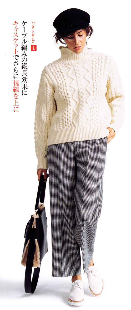 「同色同素材のセット風スタイルは、上質だからこそできるニット同士の合わせ」(三浦さん)