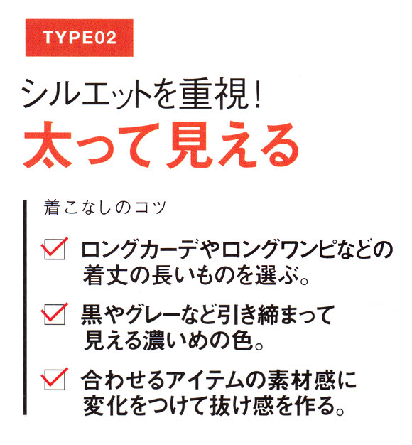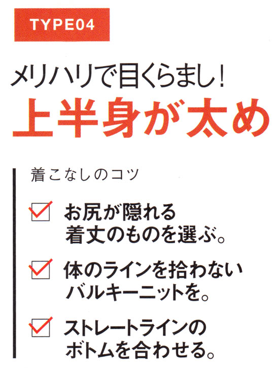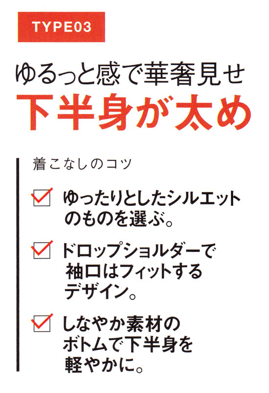 気になる体型別にコツをおさえて着こなせば、そんなお悩みも解消できます!