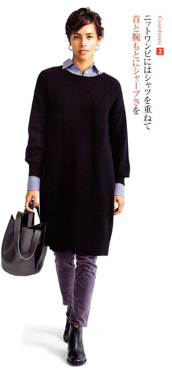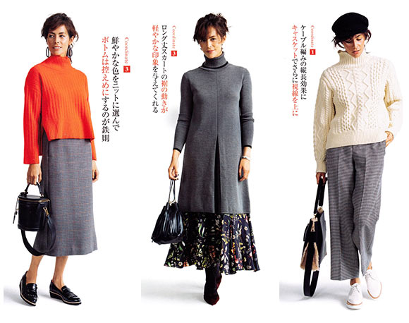 ニットはあたたかく、1枚でもサマになるから便利な反面、もこもことして着ぶくれが心配。