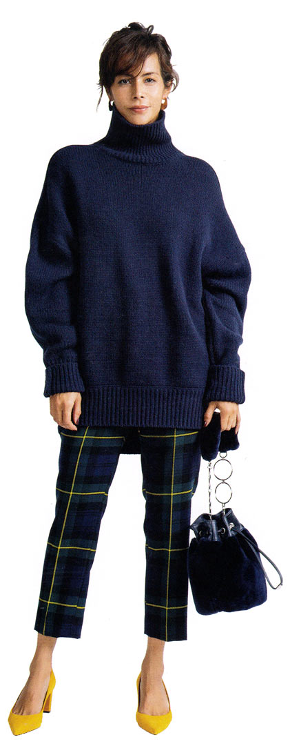 「今季トレンドの90年代風のビッグシルエットの流れは、ニットでも健在です。但し全体の印象としてはベーシックなものを。そうすれば着まわしもできるし、愛用し続けられますよ」