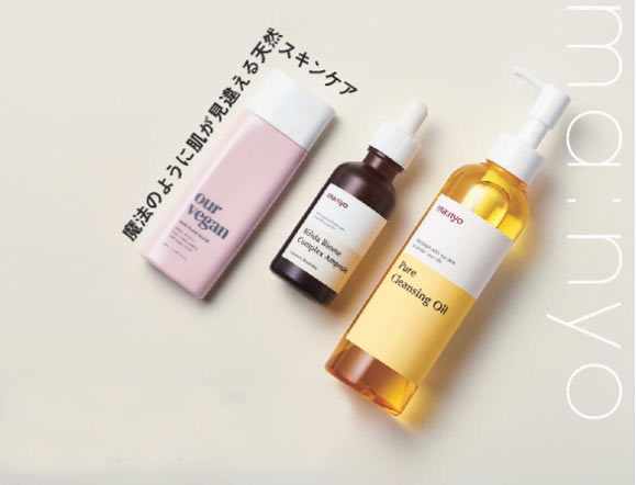 右から韓国のオリーブヤングでクレンジング部門1位の受賞歴。ピュアクレンジングオイル 200mL \2,900、肌のバリア機能を強力サポート。ビフィダバイオームコンプレックスアンプル 50mL \3,500、さりげなく、ナチュラルにトーンア