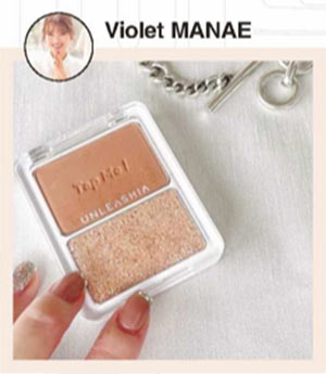 「シャドウにもシェーディングにも使えて万能! 上のマットをアイホールに、下のグリッターをアイホール中央or下目頭にのせるメイクがマイ定番。色も可愛く、グリッターがバームなのでピタッとフィットするし最高」