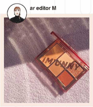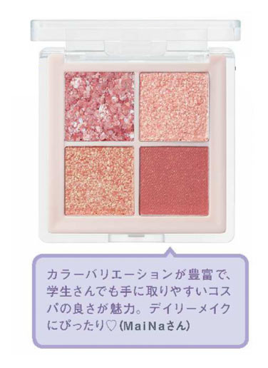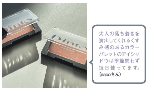 「濃い締め色が入っていない、マット系のコーラルベージュパレットはまさにクアンクメイクに最適で、めちゃくちゃ今のキブンにフイット。左はチークにも使えるので、これ1つでワントーンメイクが楽しめる。優秀♪」