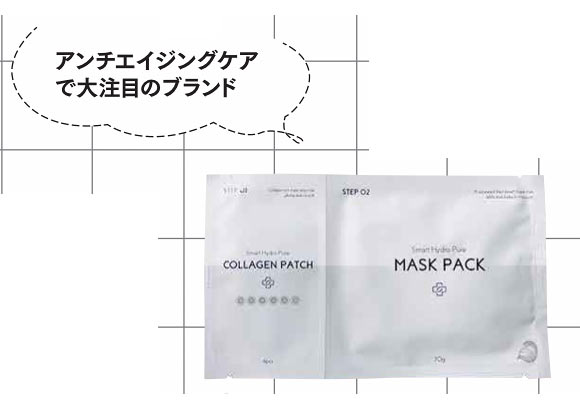 シワの気になる目元やほうれい線にコラーゲンパッチをオン。その上から美容成分ヒタヒタのマスクをかぶせて肌に浸透させる新しいタイプです。