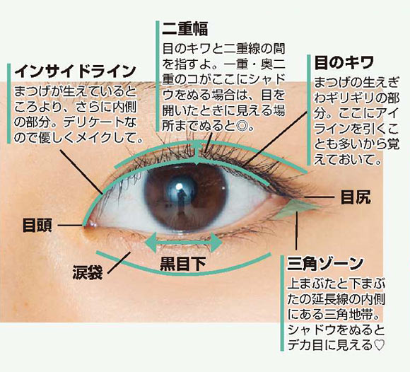 目の部位の名前は、メイクのプロセス解説にも頻出!