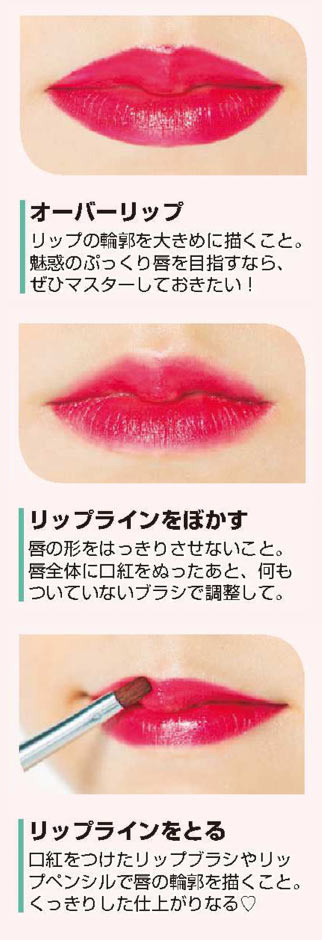 同じルージュを使っても、ぬり方を変えるだけでこんなに雰囲気が変わっちゃう♪