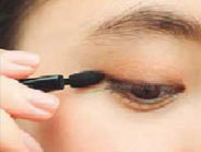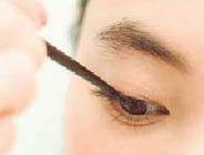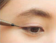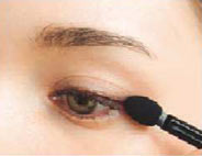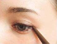 Cで、上まつげのキワに細くラインを引いて、目尻は少し長めに。