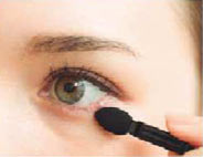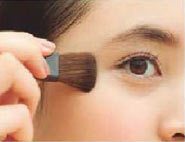 AのCをブラシにとり、まぶたのくぼみにのせて陰影を強調させる。