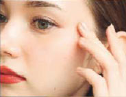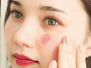 小鼻横から上に、ほお広めにCを指でなじませて、残りを目の下に。