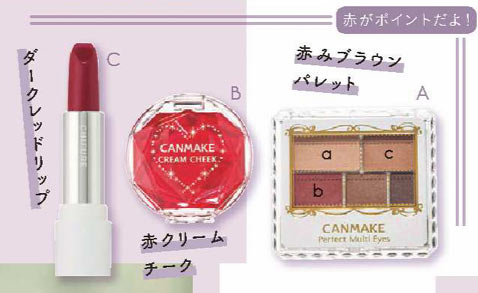 ボルドーっぽい赤はぬるだけで色気がアップ! 大人っぽい表情に変身。 \350・同ケース \130 / ちふれ化粧品