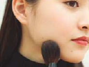 ほおはほんのり血色感が加わる程度に、Eを大きめブラシでのせる。