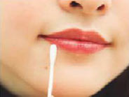 リップトをぬったあとに、口角下だけ綿棒でぬぐってきちんと見え。