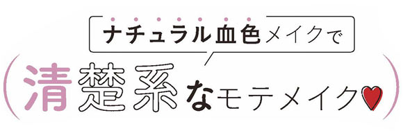 素っぽい雰囲気が魅力の清楚系を目指すなら、メイクを主張させないナチュラルな血色感がポイント。アイドルみたいなかわいさでハートをねらい撃ち!